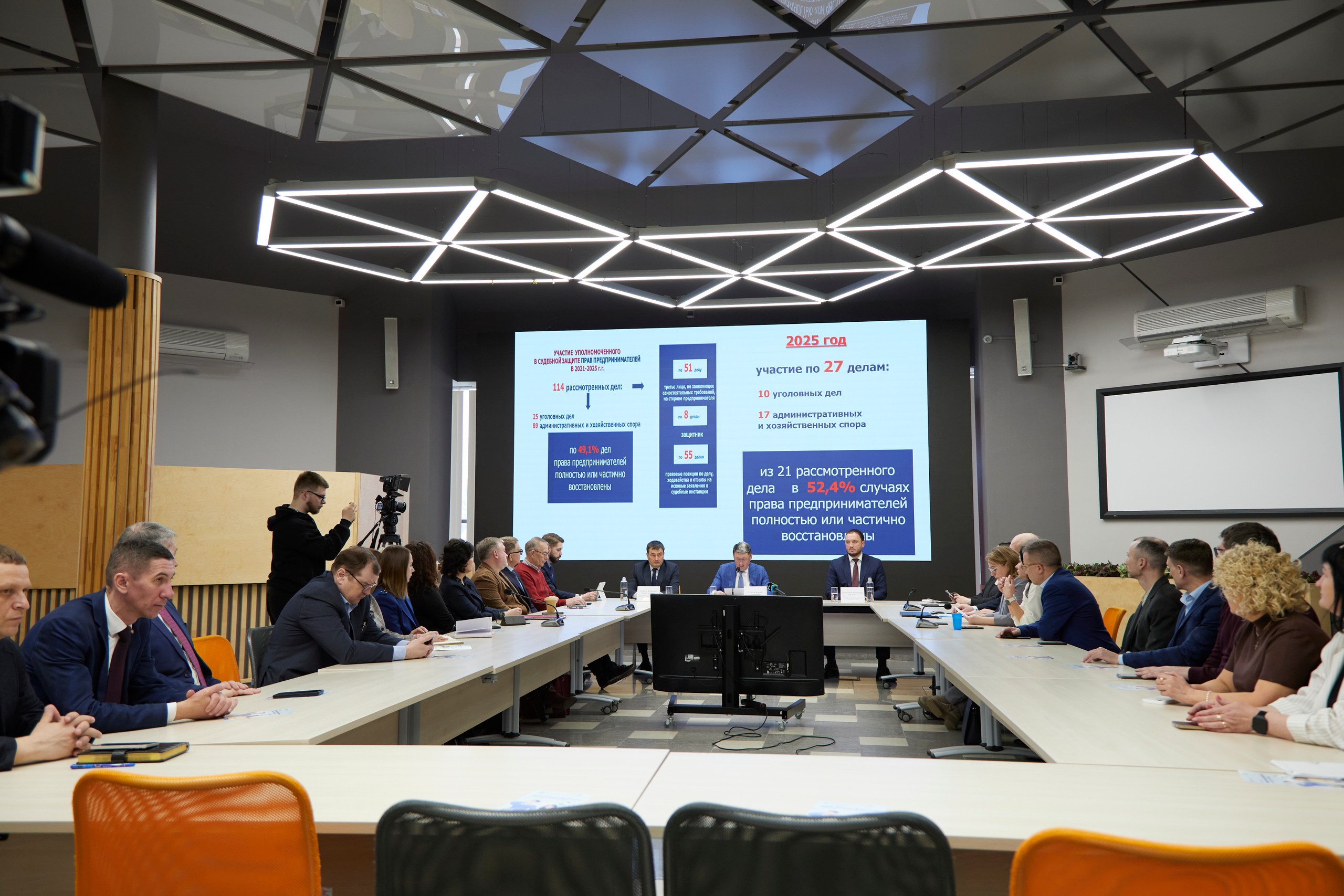 Существенное внимание уделяется судебной защите. За отчетный период обеспечено участие в 114 делах, из которых 25 – по уголовным и 89 – по административным и экономическим спорам. В 49,1% случаев права предпринимателей были восстановлены полностью или частично. В 2025 году участие обеспечено в 27 делах, по 12 из них приняты решения в пользу бизнеса.